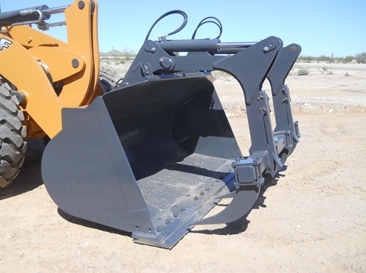Versatile bucket designed for many applications including: land clearing, bale handling, brush clearing, tree handling, scrap transportation, awkward objects, and cumbersome material.