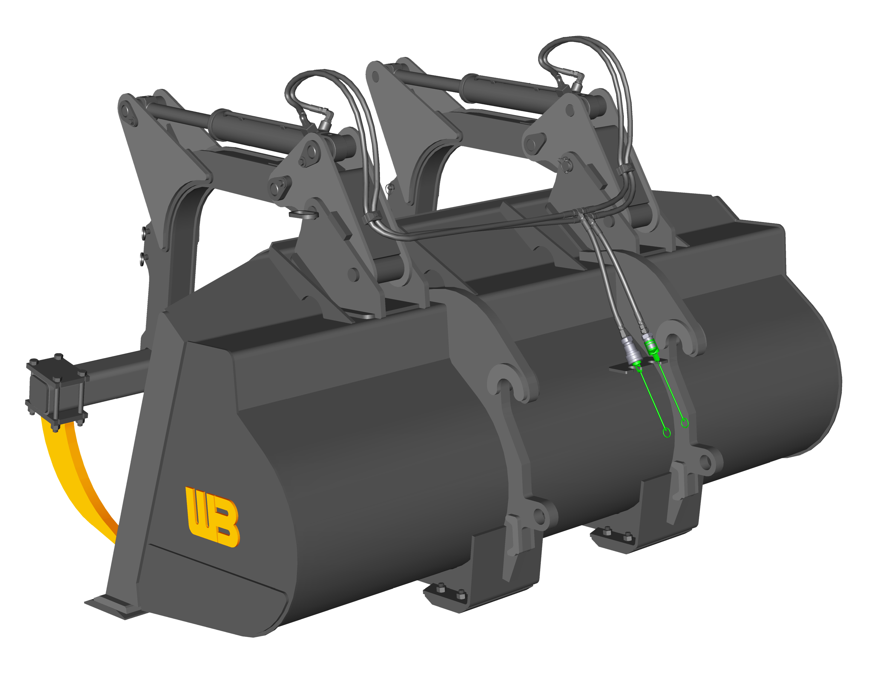 High quality cylinders, with greasable pivot points lined with hardened bushings.