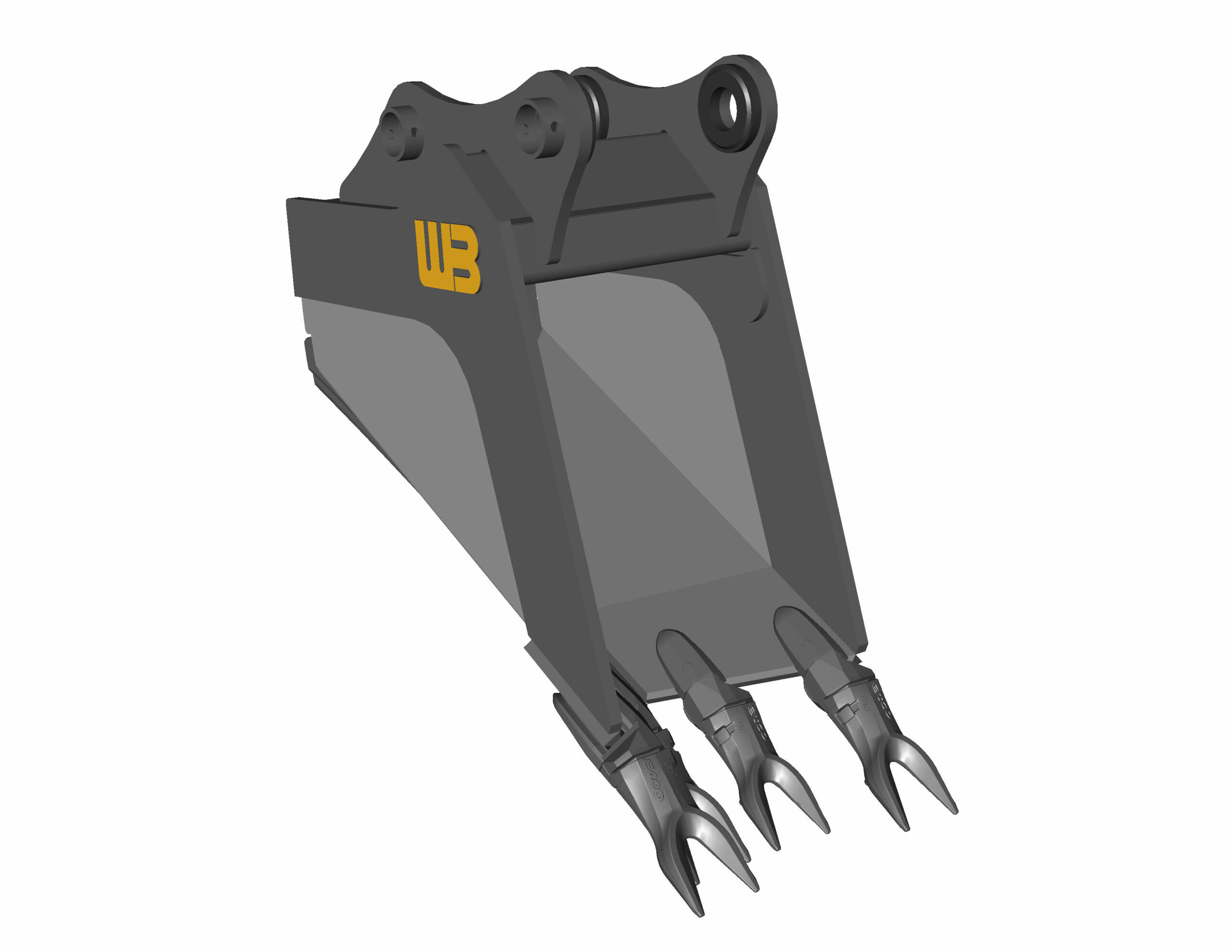Werk-Brau's Reverse V-Bottom Bucket is designed for excavating frozen ground or layered rock such as shale or caliche. The reverse V shaped design enables the machine to exert all of its force on all teeth at once to gain more surface area for ripping through strata. This is a severe duty model for heavier applications, involving tougher and more abrasive rock. These kinds of buckets can also be used for moderate prying.